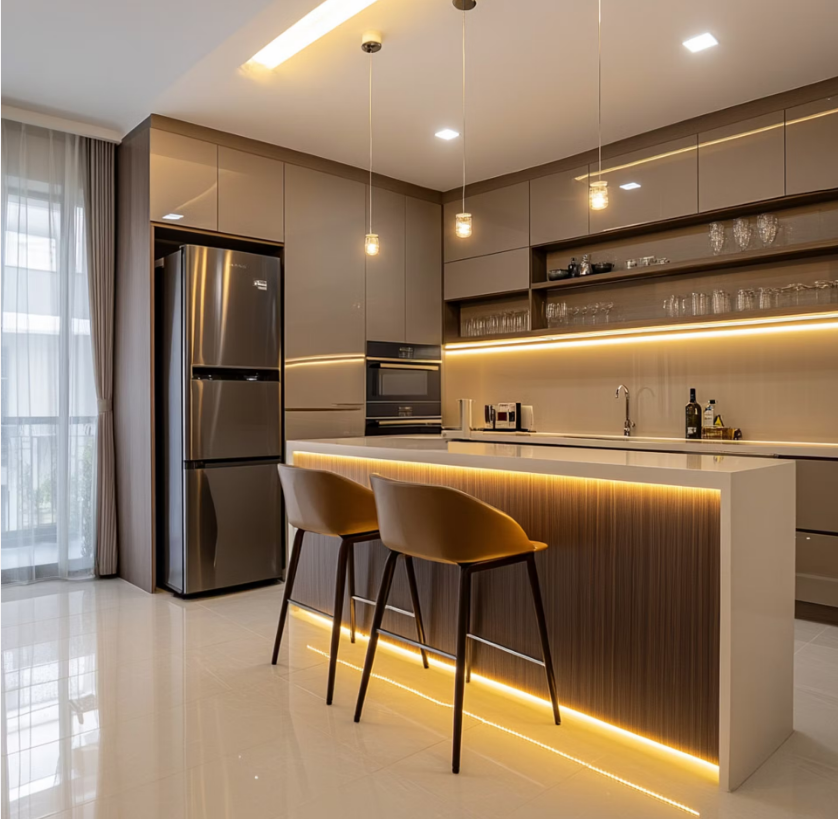 Modern kitchen interior design in Dubai often incorporate technology for increased efficiency and convenience. This may include smart appliances, integrated lighting, and other tech features.A well-designed kitchen with high-quality cabinets can significantly contribute to the resale value of a home. Potential buyers often pay attention to the condition and style of the kitchen. Investing in quality cabinet works and materials ensures durability and longevity. Well-constructed cabinets can withstand daily wear and tear, providing a lasting and functional kitchen space.